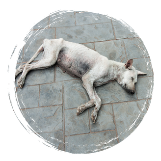 - Parasitenbefall: durch den Befall mit Endoparasiten wie z.B. Giardien und Würmern